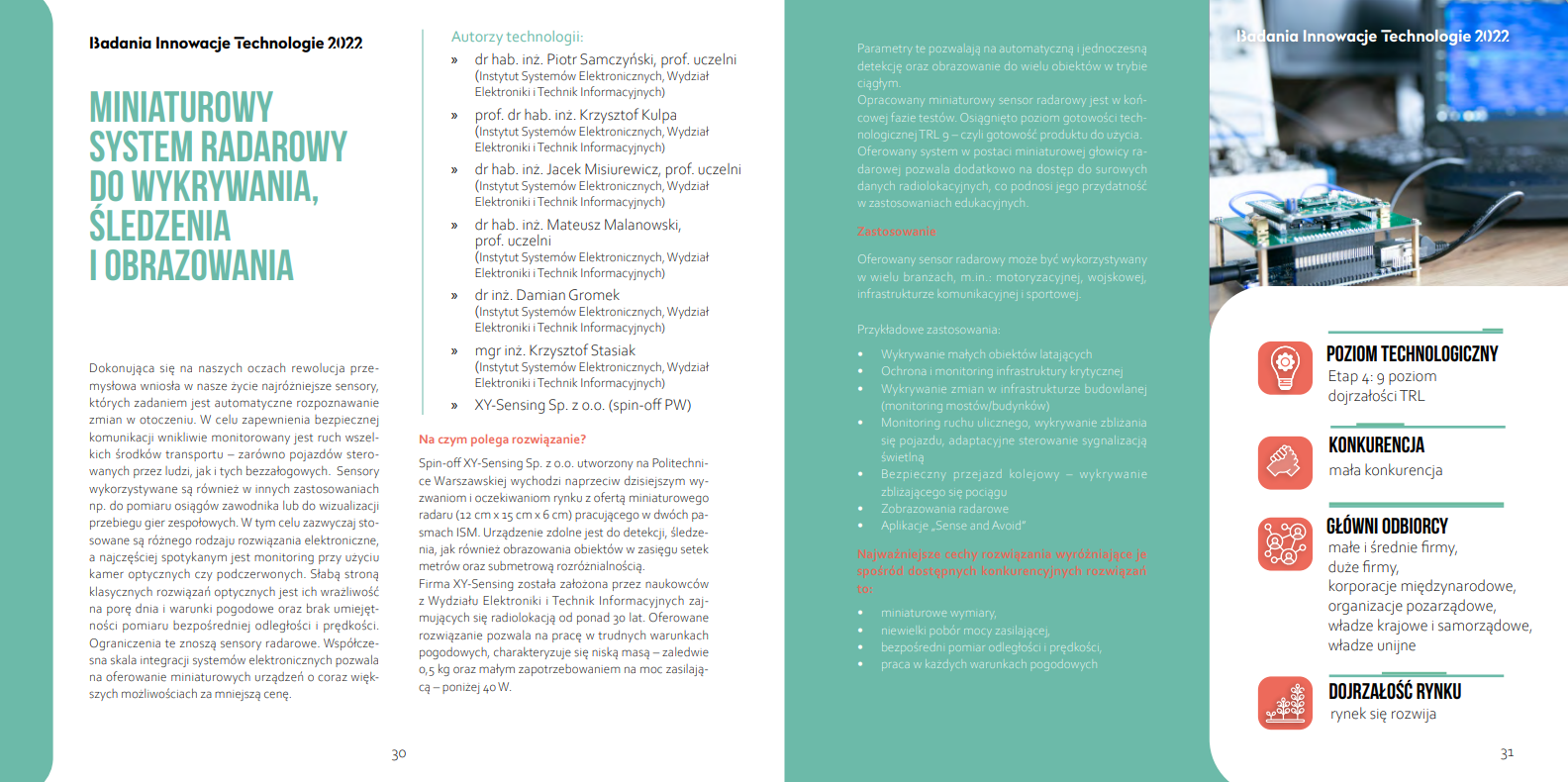Zgłoszenie przez Centrum Zarządzania Innowacjami i Transferem Technologii Politechniki Warszawskiej produktu XY-SAR Sensor do nagrody Defender na Międzynarodowym Salonie Przemysłu Obronnego (MSPO), Kielce, wrzesień 2021