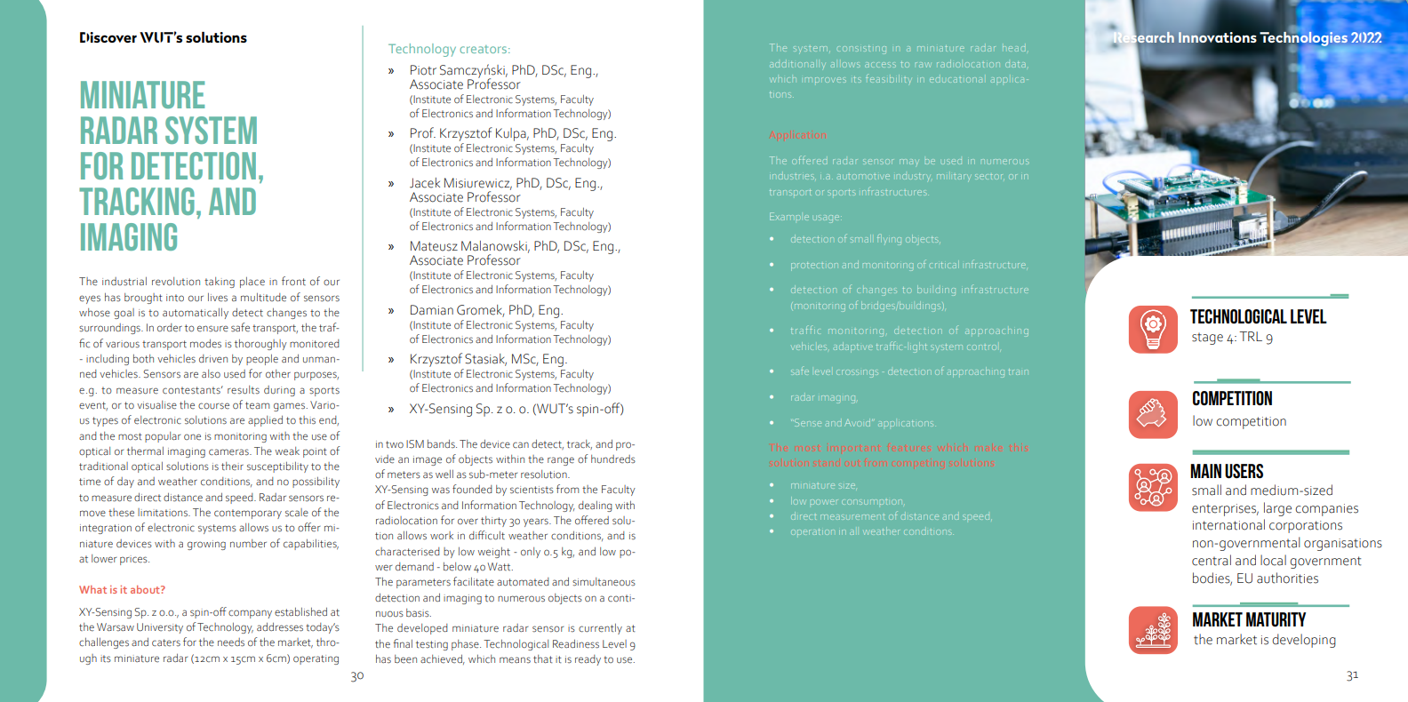 Application by the Centre for Innovation and Technology Transfer Management of Warsaw University of Technology for the XY-SAR Sensor product for the Defender Award at the International Defense Industry Exhibition (MSPO), Kielce, September 2021